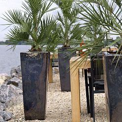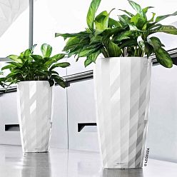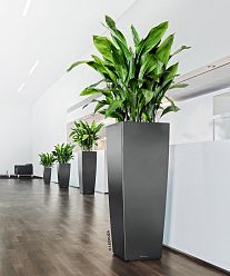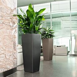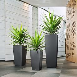 To use tall indoor planters outdoors aim for fiberstone, polystone or resin models that incorporate UV and frost protection. Some pots benefit from a self-watering feature which provides optimal care for your plant.