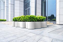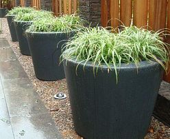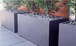 If you want to decorate your outdoor area with modern jumbo flower planters, then a dark grey color would be a great option. Such a shade of grey will perfectly emphasize plants with large leaves or ornamental trees with lush foliage and long trunks.