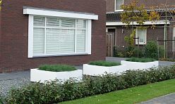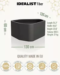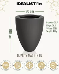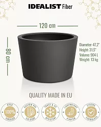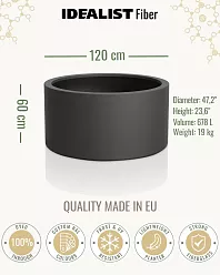 The materials for such jumbo flower containers may differ, but they all have high strength for standing in the open full sun. The outer section of such planters can be protected from overheating or overcooling by applying special protective blankets. You can also grow dwarf shrubs, whose shapes and small size will look beautiful in a jumbo space, and make your garden stylish and beautiful.