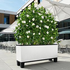 Plastic outdoor planters and pots are very popular for outside use. Though they may be used indoors, plastic planters are durable and long-lasting products that can serve for many years in outdoor setting as well. They are also inexpensive and lightweight, and function as excellent decorative elements that can be used on patios and other spaces.