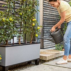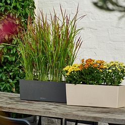 The soil in these flower containers perfectly retains moisture, which prevents plants from being in water deficit. Unlike some natural materials, plastic is extremely lightweight and easy to handle in any setting. Plastic flower pots or decorative troughs are also a cost-effective option in comparison to others. Browse our collection of standing or hanging plant containers, or take a look at tall cylindrical planters.