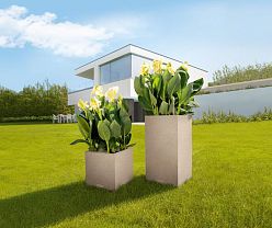 Very tall pots look very cool; they possess a more aesthetic design and are of the most durable materials for sustainability. Forms and sizes of garden vases can vary so flowers and plants for these types of containers should be carefully selected. You can choose extra bright colors, such as yellow or orange, to create a beautiful outdoor composition with long flower pots.
